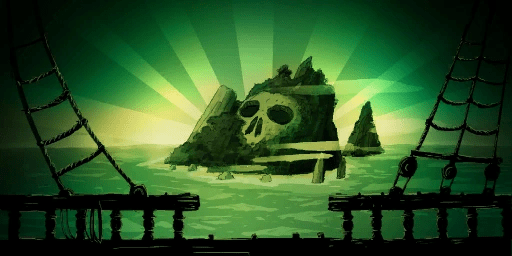 El background del baile de la composición de “El Rey del Calipso” consiste en una isla con forma de calavera y localizada en medio del mar, además de la cubierta de un barco pirata, encima de la cual están bailando los dos coaches.