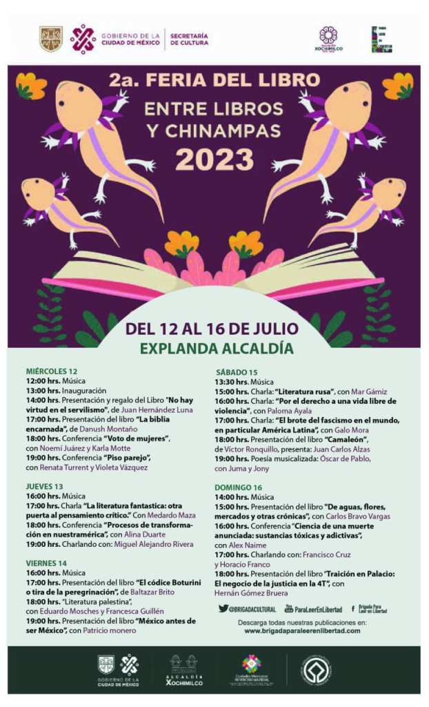 La Brigada para Leer en Libertad, asociación civil sin fines de lucro la cual busca fomentar el hábito de la lectura en México, anunció la Segunda Feria del Libro de la Alcaldía Xochimilco, cuyo eslogan es “Entre libros y chinampas”.