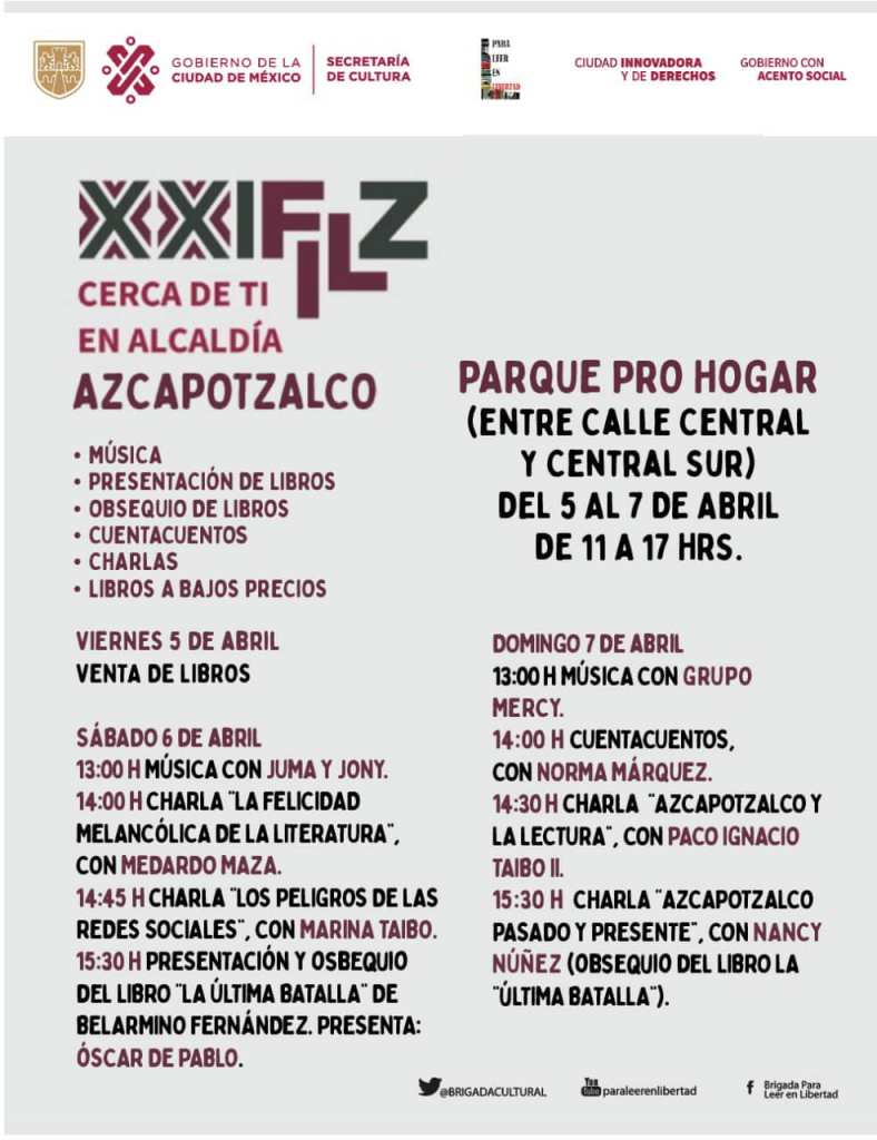 “Acá en la organización no gubernamental el aspecto que nos interesa es llevar la cultura y la lectura a la población, al pueblo de México”, comentó Cambero para terminar dicho anuncio. El programa completo de actividades se puede ver a continuación: