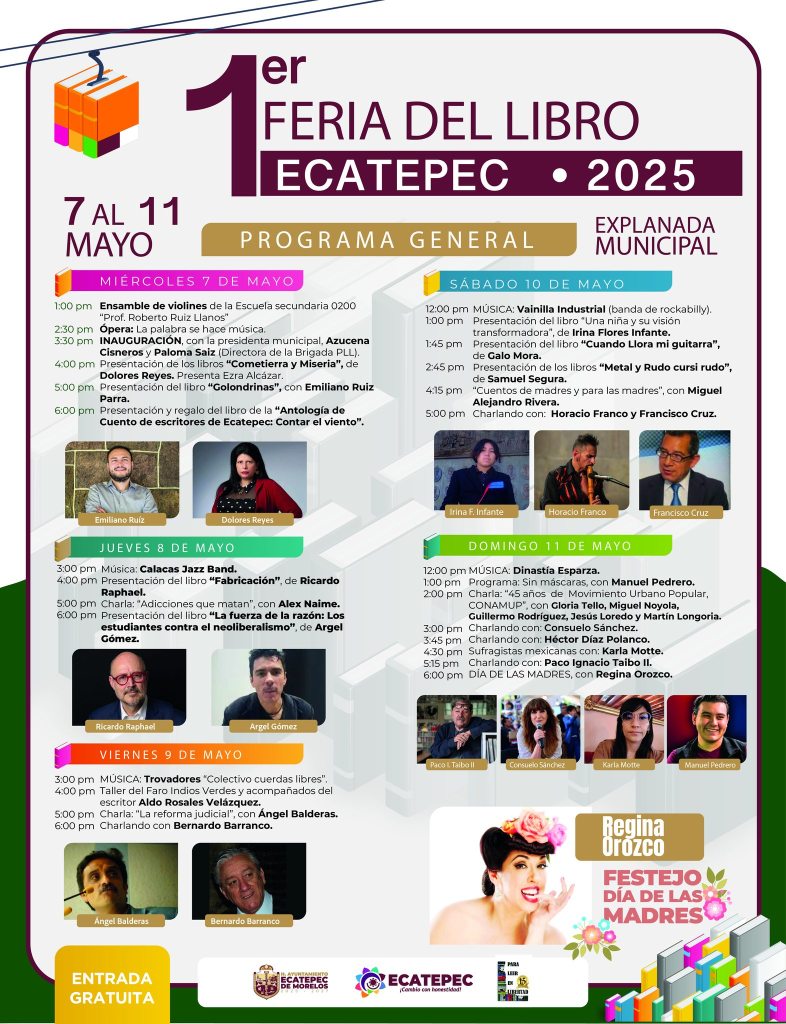 ¡Atención habitantes, vecinas, vecinos y vecinxs del municipio de Ecatepec de Morelos! La Primera Feria del Libro en Ecatepec llegará a la explanada de dicha entidad del Estado de México (EDOMEX) a partir de mañana, miércoles 07 de mayo de 2025.