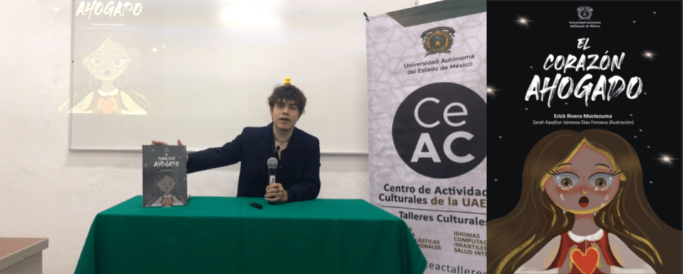 El escritor mexicano Erick Rivera Moctezuma presentó su libro El corazón ahogado, el cual ganó el tercer lugar del Décimo Concurso de Cuento Infantil del Centro de Actividades Culturales (CeAc) de la Universidad Autónoma del Estado de México (UAEMéx).