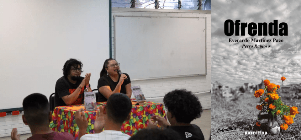 El antropólogo social, corrector de estilo, diseñador editorial, editor, escritor y profesor mexicano Everardo Martínez Paco “Perro Rabioso”, y la profesora y promotora de lectura mexicana Leslie Rondero Ramírez presentaron el libro Ofrenda.