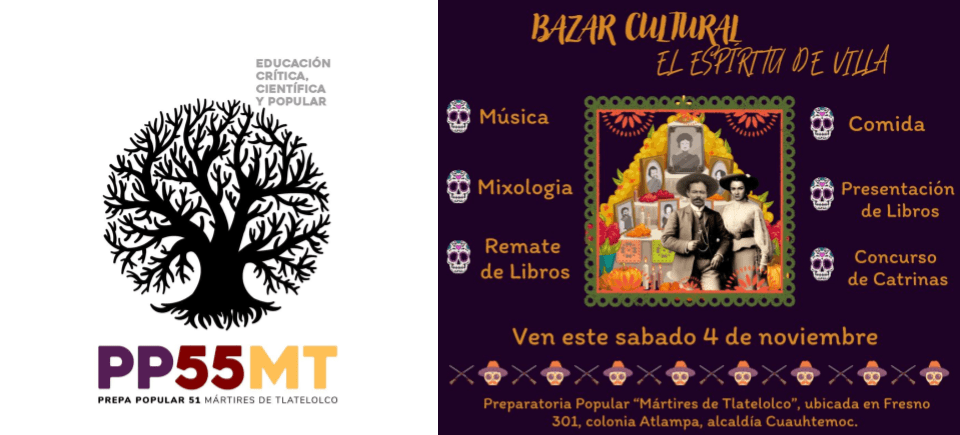 En el marco del Día de Muertos, la Escuela Preparatoria Popular “Mártires de Tlatelolco” llevará a cabo el Bazar Cultural “El espíritu de Villa cabalga”, dedicado al revolucionario mexicano Francisco “Pancho” Villa y a la escritora mexicana Nellie Campobello.