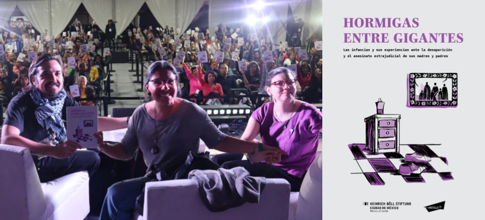 El escritor y periodista Adolfo Córdova, la escritora y reportera Daniela Rea, y la investigadora María de Vecchi presentaron el libro Hormigas entre gigantes: Las infancias y sus experiencias ante la desaparición y el asesinato extrajudicial de sus madres y padres de Alicia de los Ríos, Jessica Alcázar y Rea en la XXV Feria Internacional del Libro del Zócalo de la Ciudad de México (FILZ CDMX).