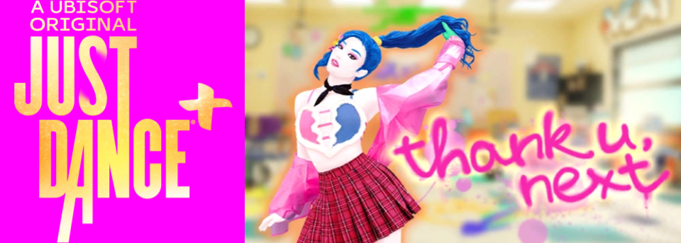 La canción Thank U, Next de la actriz, cantante y compositora estadounidense Ariana Grande llegó al nuevo servicio de streaming del videojuego de música y baile Just Dance, llamado Just Dance +, con motivo de la temporada Lover Coaster.