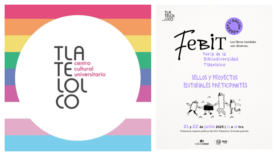 Como parte del Día Internacional del Orgullo LGBTTTIQA+, se celebrará la Primera Feria de la Bibliodiversidad Tlatelolco (FeBiT) en el Centro Cultural Universitario (CCU) de dicho lugar los próximos sábado 21 y domingo 22 de junio de 2025.