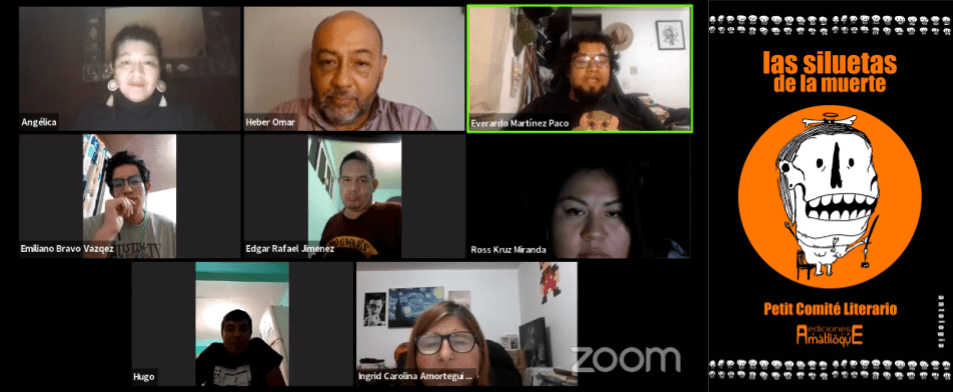 Elsy Stella Gómez Cuéllar, Emiliano Bravo Márquez, Everardo Martínez Paco “Perro Rabioso”, Heber Omar, Hugo Enrique de la Rosa Carreto, Óscar Victoriano Taboada “Vito” y Ross Cruz Miranda, algunas autoras y algunos autores del Pequeño Comité Literario, presentaron el libro Las siluetas de la muerte.